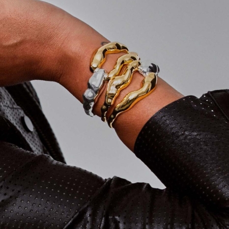 • Bracelete Prata Geométrico Moderno – Fecho Articulado