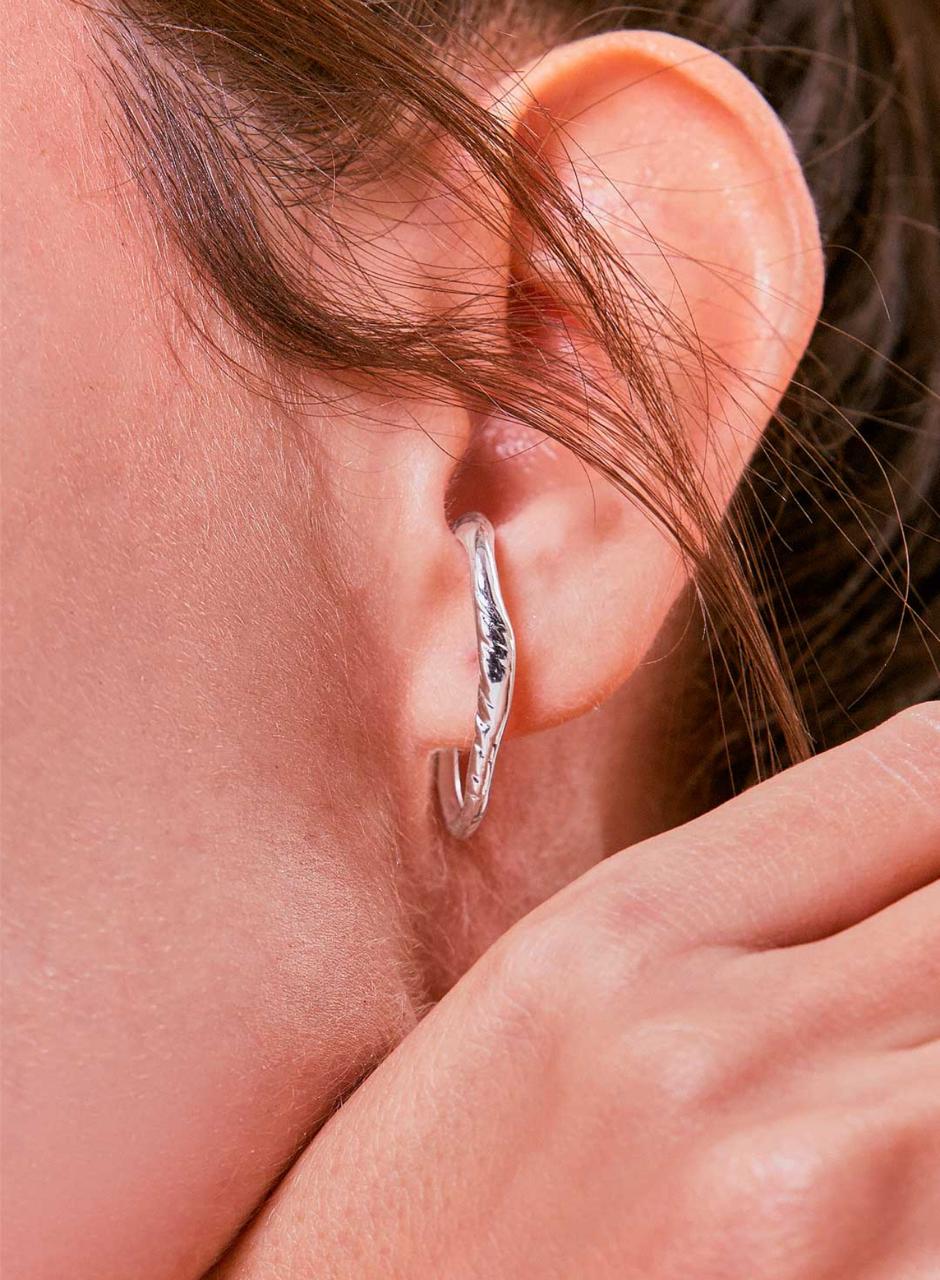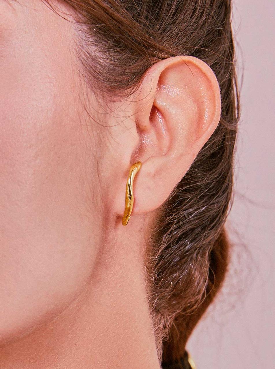 O Brinco Entusiasmo P é um filete elegante e minimalista que abraça o lóbulo da orelha em um estilo earhook, proporcionando um visual discreto e refinado.