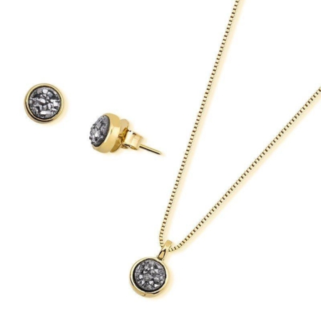 - Harmonia Perfeita: Os brincos e o pingente seguem o mesmo padrão de design, oferecendo um look coordenado e impecável, ideal para elevar desde o look de trabalho até um evento social.